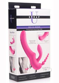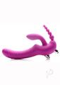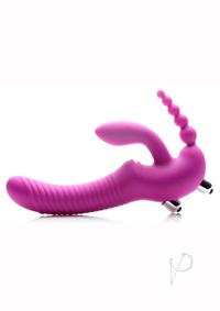 Ergonomically designed for the female body, this strapless strap-on provides clitoral, vaginal, and anal pleasure to the wearer while delivering a textured shaft with which to penetrate their partner. Furthermore, this remarkable couples toy thrums throughout all stimulation points with the power of two vibrating bullets.