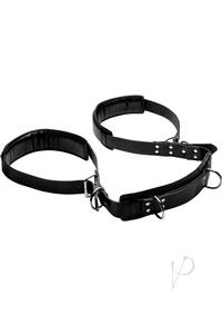 Explore the depths of your lover! This attractive leather sling was designed so that you can go deeper for more pleasure between you and your partner! Padded behind the neck and at the thighs for comfort, this positioning aid pulls your play things legs back with ease to allow you greater access than ever before. Each side adjusts so that you can customize the experience to your sexual desires. The neck support will also allow your lover to have a more comfortable scope of the show as they watch you do your thing! Two D-rings located behind the neck area give you the option of attaching your own cuffs to turn your love-making into a naughty bondage experience!Measurements: 86 inches in total length. Thigh cuffs adjust from 21 to 28 inches in circumference.Material: PU Leather, metal.