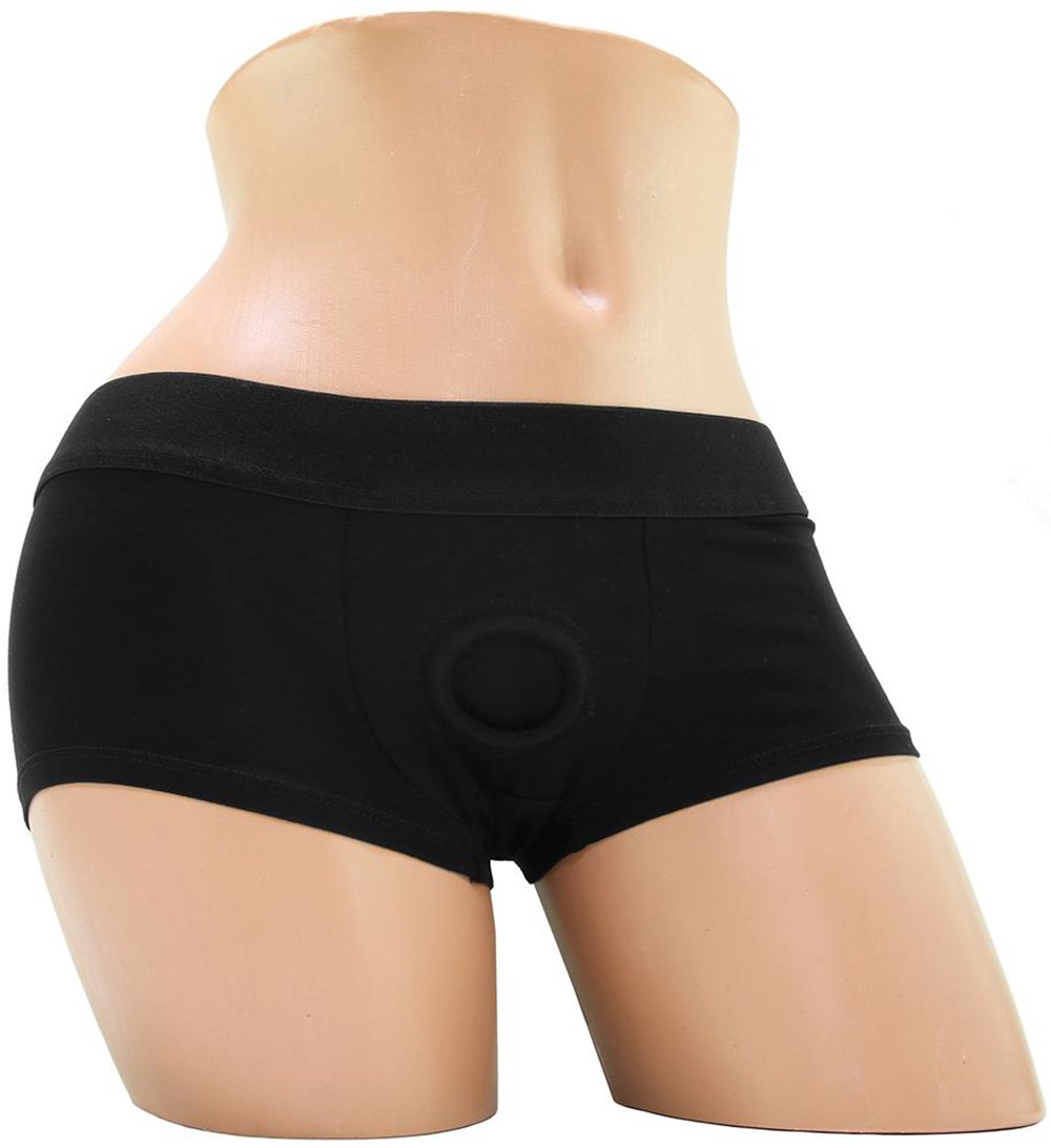 Some like to wear them to pack, others to play! Your new Temptasia Harness Briefs give full coverage comfort no matter what you`re strapping. Made from soft, stretchy and comfortable cotton/spandex. Features two inner pockets to accommodate average vibrating bullets and aSilicone O-ring that handles average-to-small strap on dildos and packers with ease. Machine washable.nn37 in. Stretchable Waistband (Measured Unstretched)