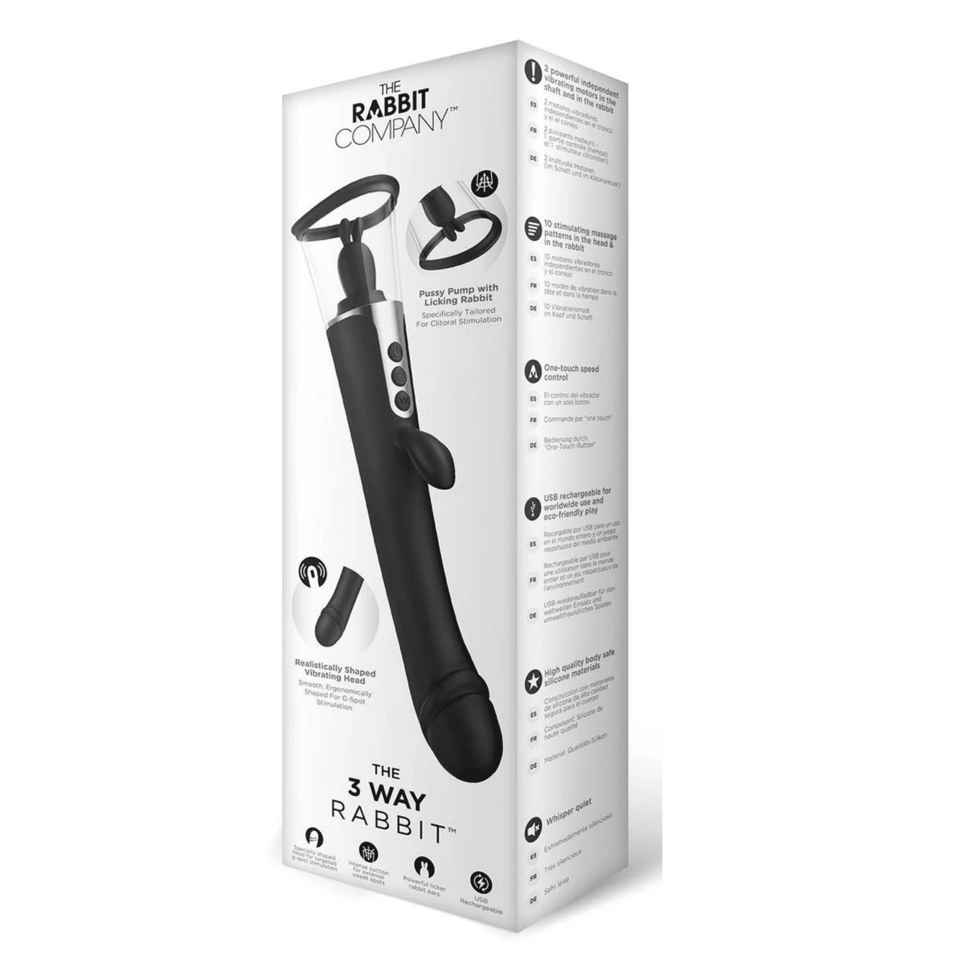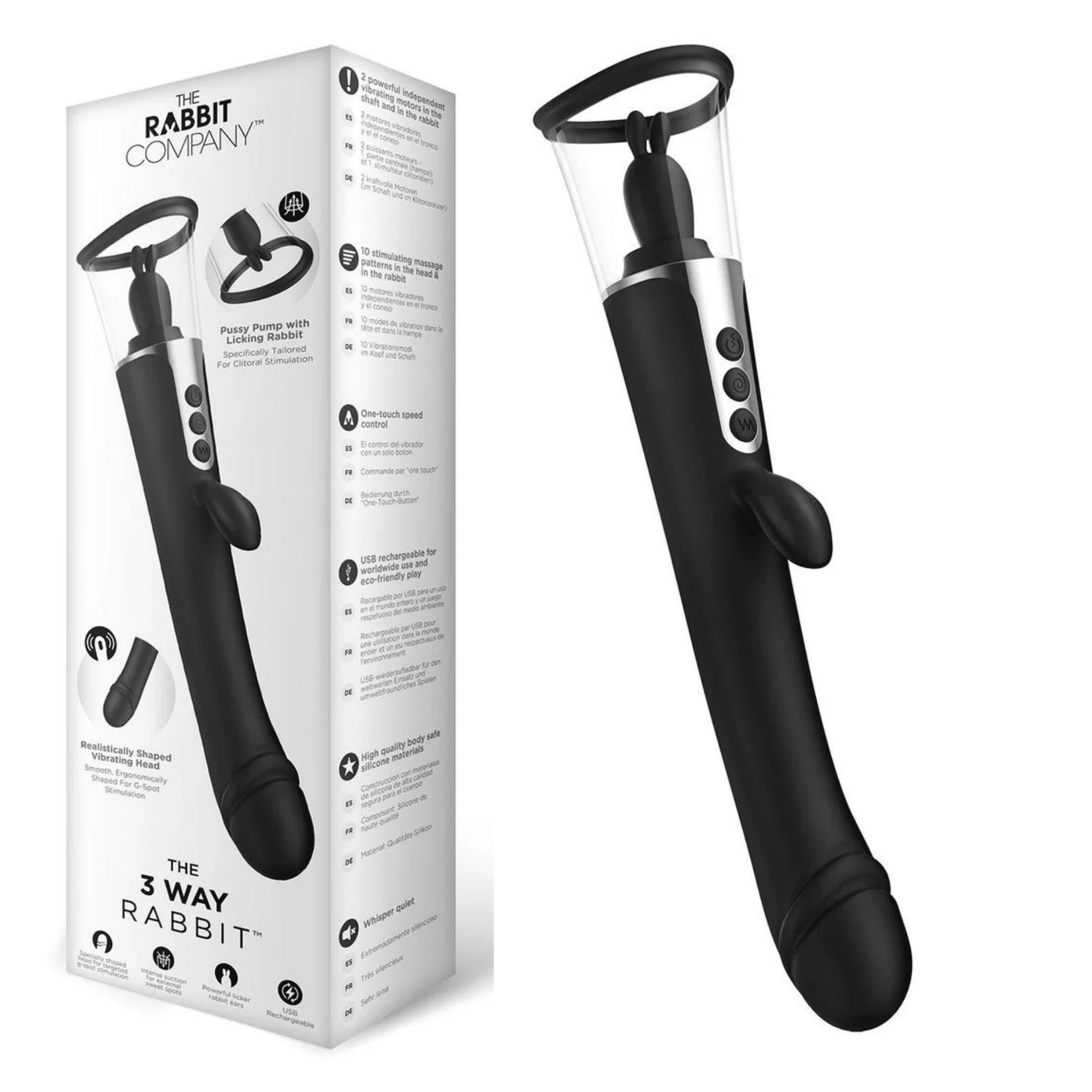 Experience the ultimate in triple stimulation with The 3 Way Rabbit Powerful Suction Pussy Pump with Tongue Licker—an innovative all-in-one toy designed to deliver mind-blowing internal and external pleasure. The 3 Way Rabbit Powerful Suction Pussy Pump with Tongue Licker combines a realistically shaped vibrating shaft for deep internal massage, a flexible arm for pinpoint clitoral stimulation, and a powerful suction pump with a flicking tongue licker for unmatched sensations.