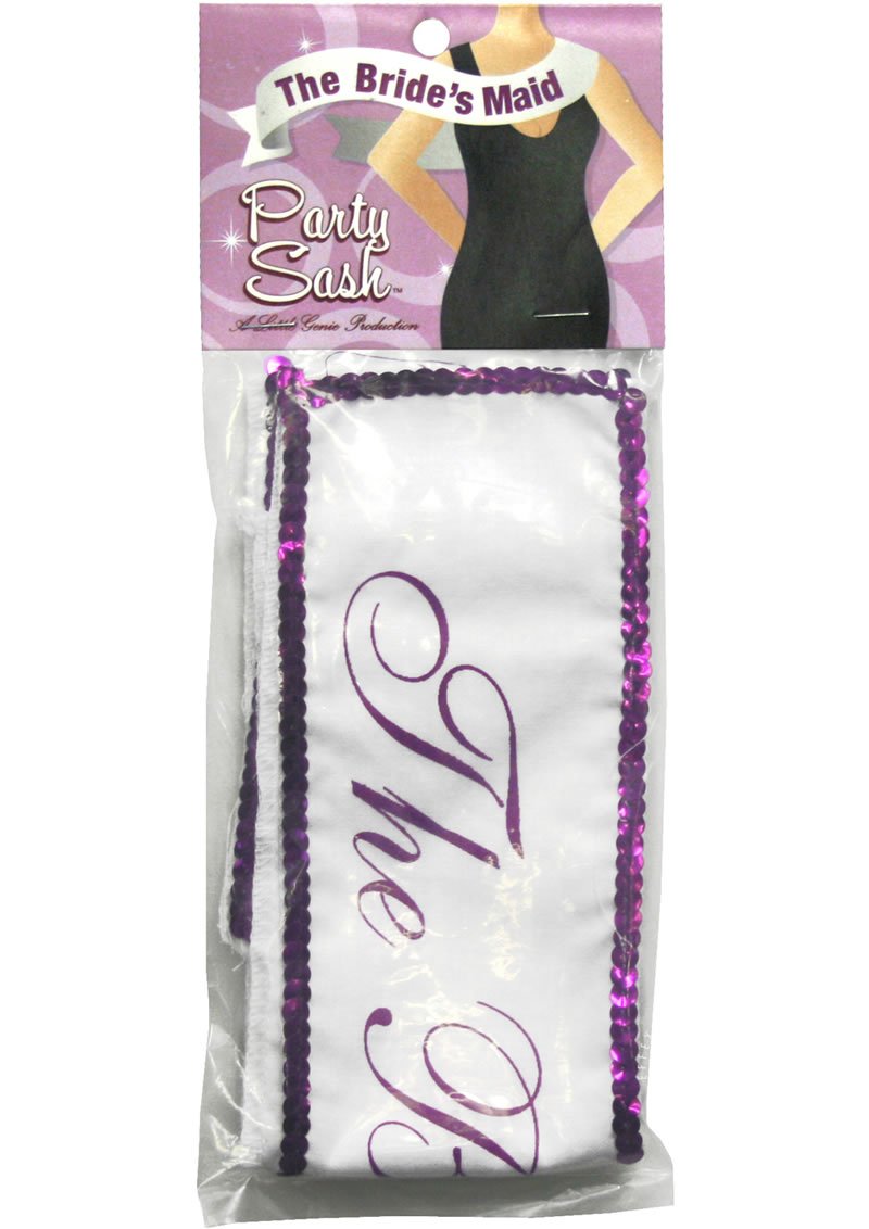 A sparkling addition to your Bachelorette or bridal party wardrobe that is sure to enhance your night of fun! You`ll definitely be the center of attention with this 5 foot long party sash. Adjustable to fit most party goers. For additional fun, pin on candy or flowers. Safety pin not included. This will be an occasion that you`ll never forget!