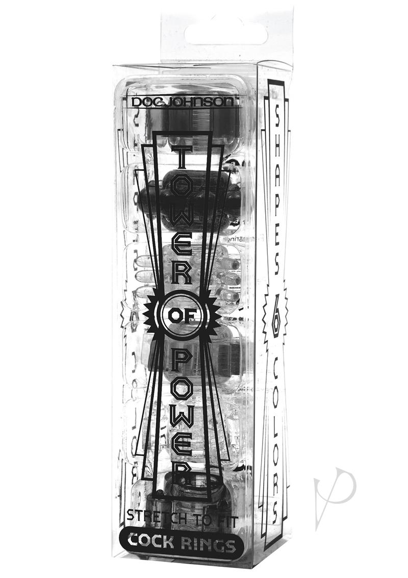 Give yourself the Black Tower of Power Cock Rings set and excitement is sure to follow. Made of super stretchable TPE, these cock rings will add excitement to your play time. This ingeniously packaged selection of rings is priced to sell. Make your dollars stretch more. Make the fun last longer, with Doc Johnson`s Tower of Power.