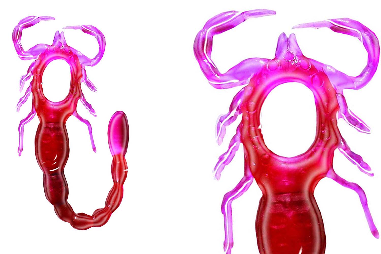 Super Scorpion Magenta is made from phthalate free, latex free materials soft silicone. 2 powerful motors. Waterproof for play in and out of the water. Up to 40 plus minutes of continuous powerful vibrating action. Vibrating ring requires LR41/AG3 changeable button cell batteries, included.