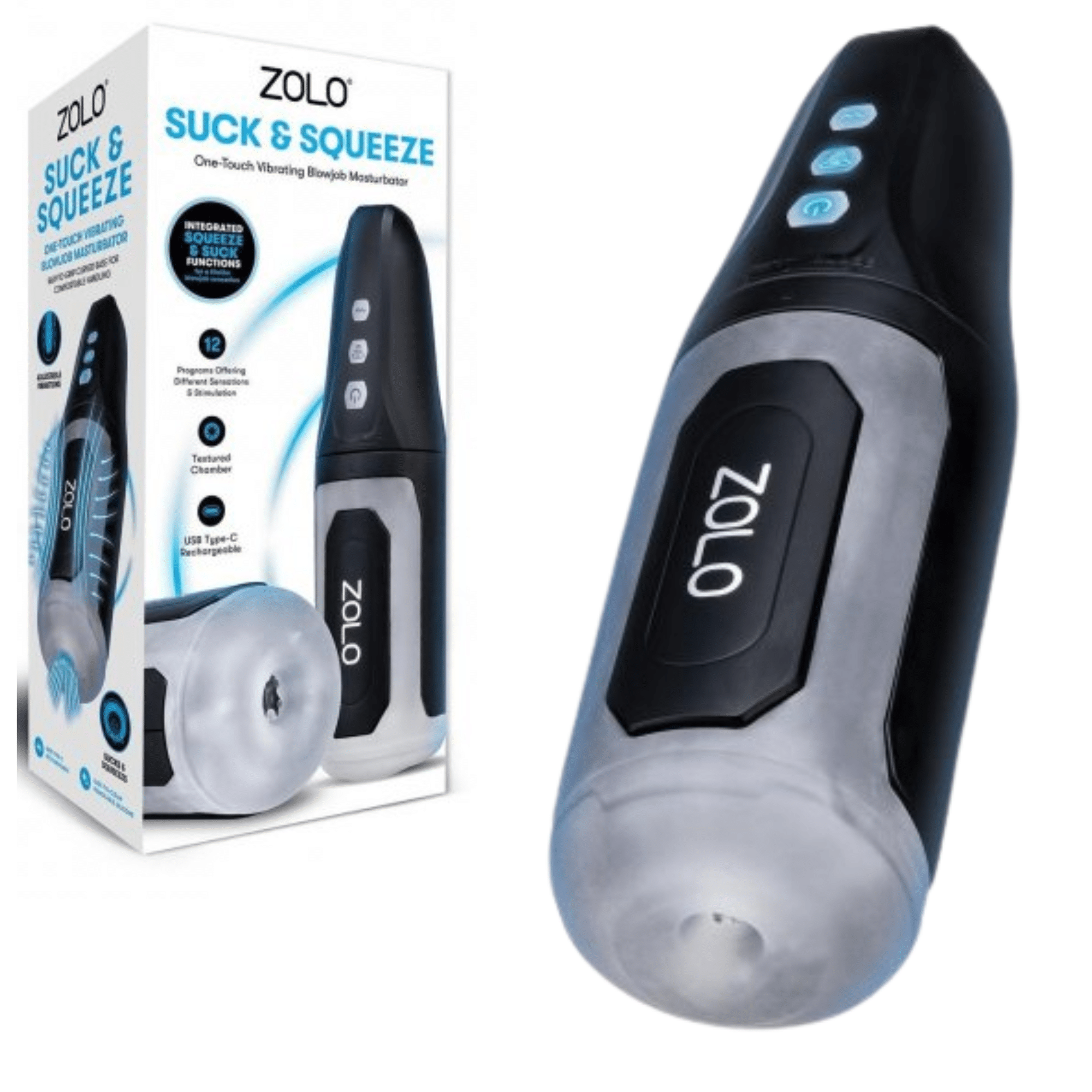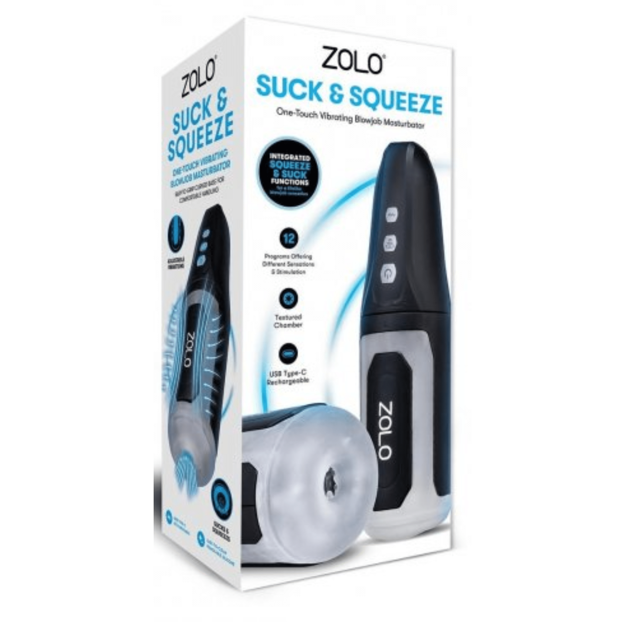 Indulge in an unforgettable pleasure experience with the Zolo Suck & Squeeze One-Touch Vibrating Blowjob Masturbator. This advanced male masturbator is engineered to provide the most realistic and satisfying sensations, combining powerful vibration, suction, and an adjustable squeeze function that mimics the feeling of oral sex. With 12 customizable settings, this device offers intense, tailored stimulation to take your pleasure to new heights.